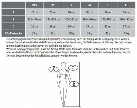 - die Weste bildet einen Airbag rund um den Oberkörper und umhüllt so Brust und Hüfte, aber vor allem auch Rücken und Wirbelsäule