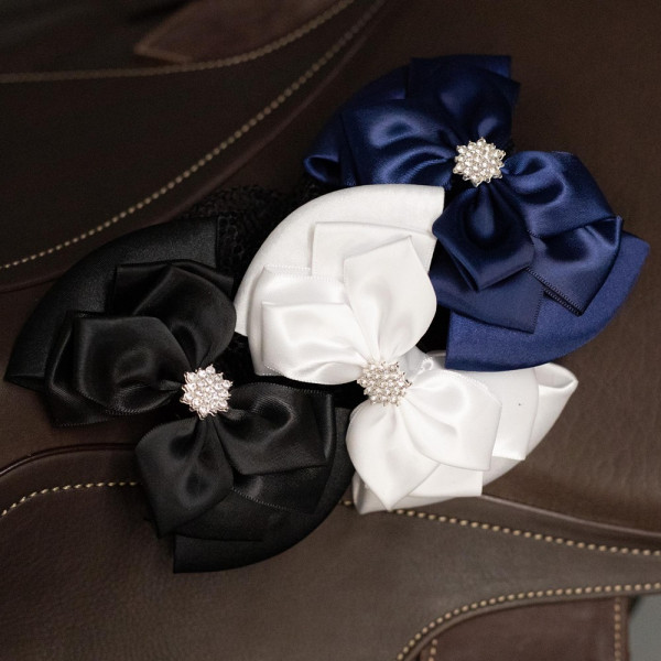 Luxuriöse Haarschleife mit Haarnetz. Mit silberfarbenen Kristallen verziert.