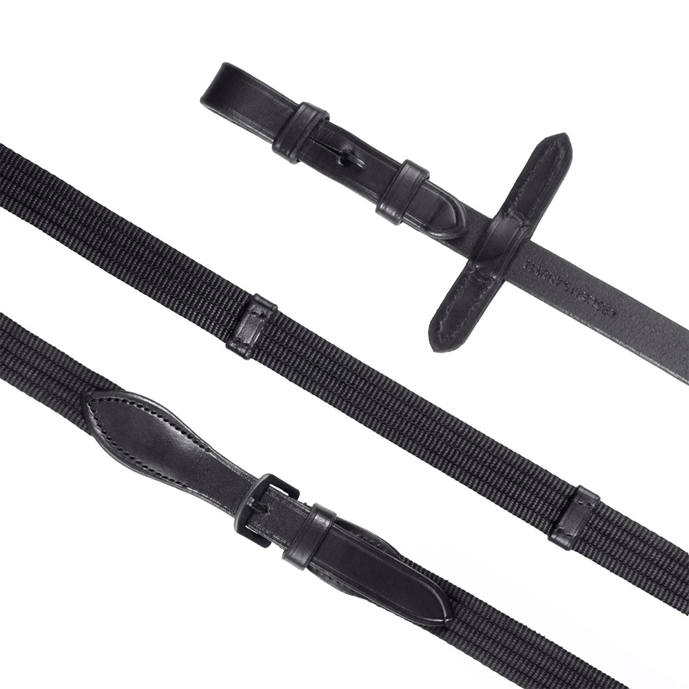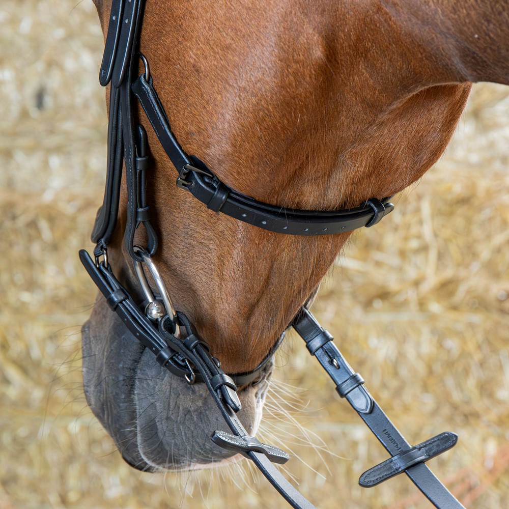 Der Kehlriemen gewährleistet Stabilität und hält das Zaumzeug sicher an seinem Platz. Mit verdeckten Verschlüssen an den Backenstücken und Webzügeln ausgestattet.