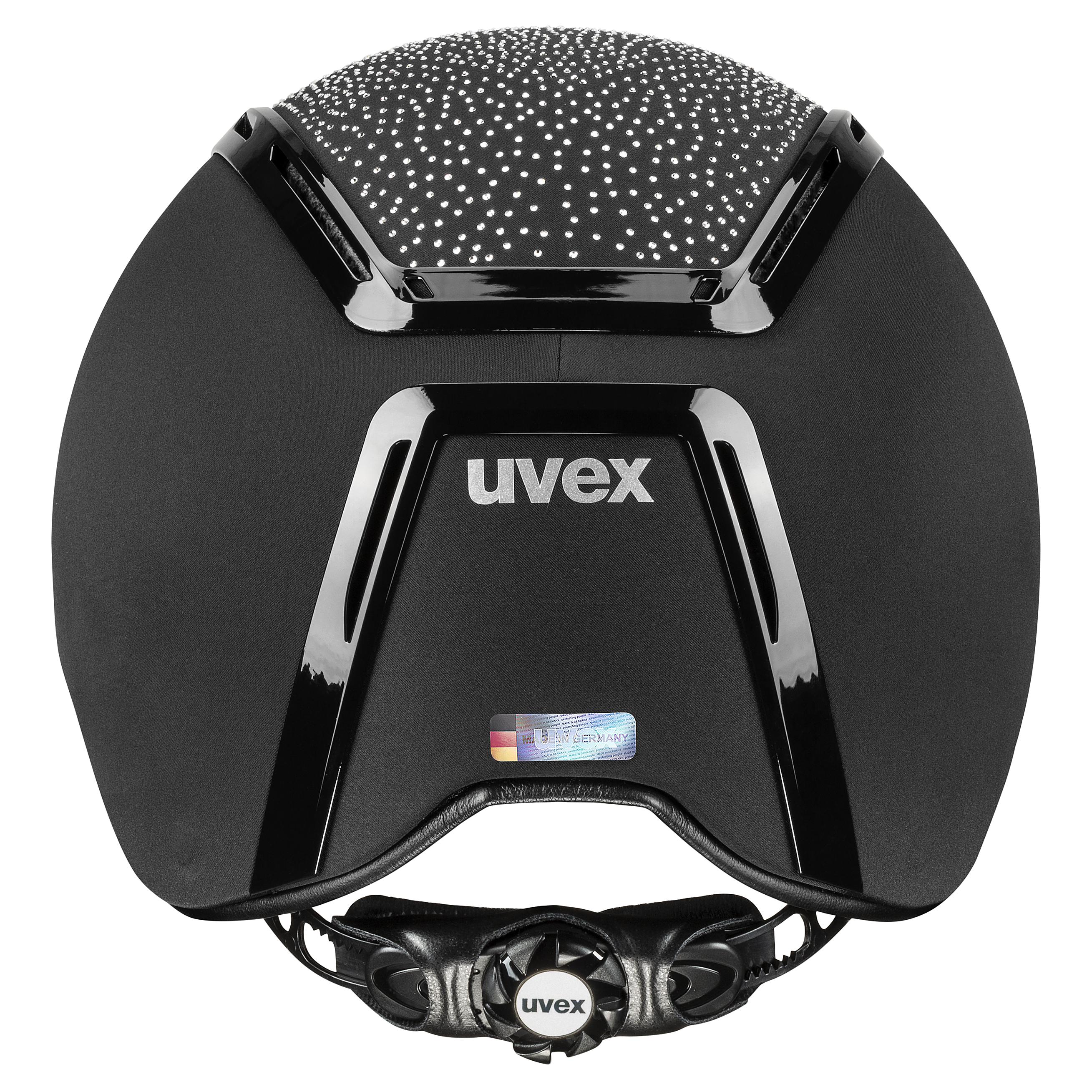 Der uvex exxeed flash mit mehr als 3.000 original Swarovski®-Kristallen umgeben von einem Rahmen aus glänzendem Klavierlack ist ein echtes Statement. Hier trifft eine außergewöhnliche Optik auf kompromisslosen Schutz durch geprüfte Hardshell Technologie. Der Helm mit Satinbezug in black oder navy gehört zu unserer Premium-Kollektion und ist dabei an High-tech-Details mit Glamour kaum zu überbieten: Die integrierte 3D IAS Größenanpassung und das neu entwickelte Gurtbandsystem aus veganem Leder mit einem verstellbaren Y-Verteiler sorgen stets für einen optimalen Sitz. Außerdem ist der Helm ausgezeichnet belüftet und bietet hohen Tragekomfort für Spitzenleistungen im Sport.