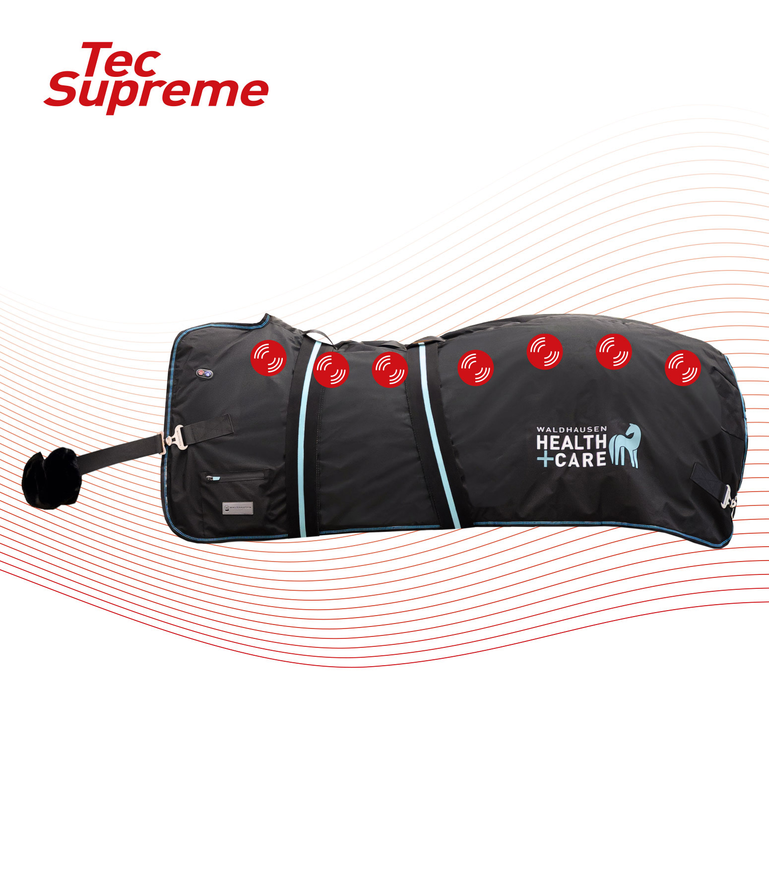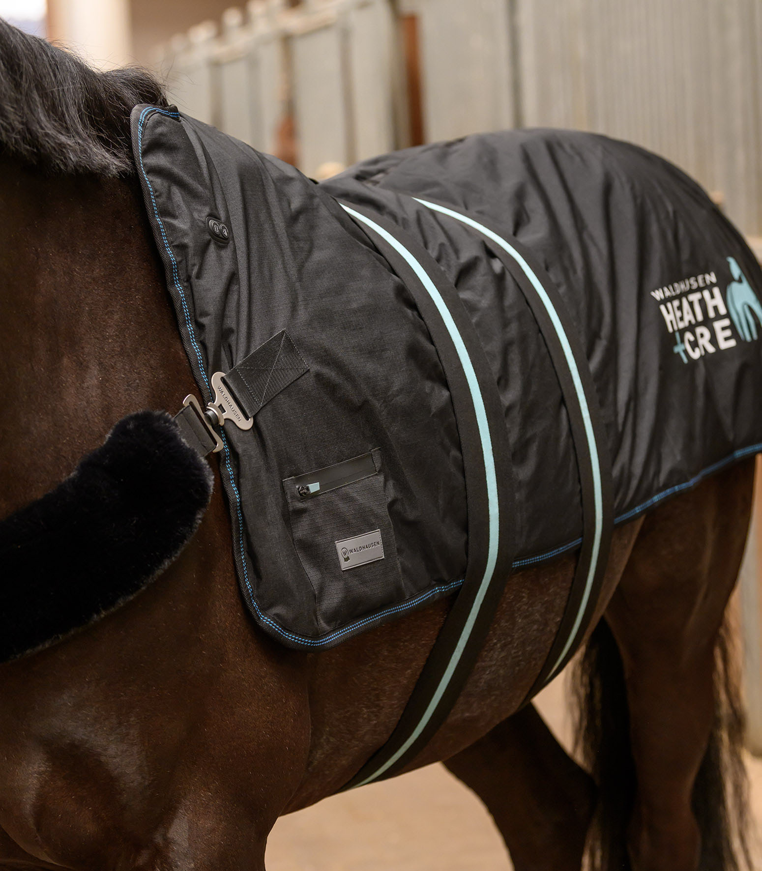 Wohlbefinden auf Knopfdruck. Die Waldhausen Health + Care TecSupreme Heiz- und Massagedecke entspannt gezielt verspannte Muskel, fördert die Durchblutung und unterstützt die Regeneration. Jede Seite der Decke verfügt über ein eigenes Heizsystem sowie sieben integrierte Massageköpfe. Beide Seiten lassen sich individuell und unabhängig voneinander steuern. Schnell, effektiv und super einfach in der Anwendung. Ob vor dem Training, nach der Arbeit oder einfach zum Verwöhnen: Dein Pferd erlebt Wärme und Massage wie im eigenen Wellness-Spa.